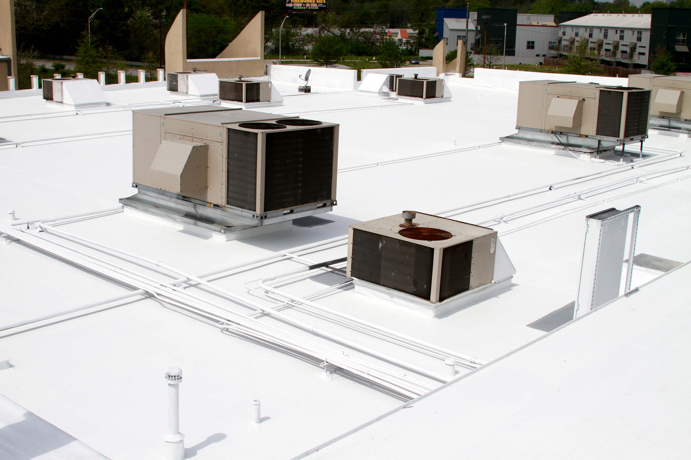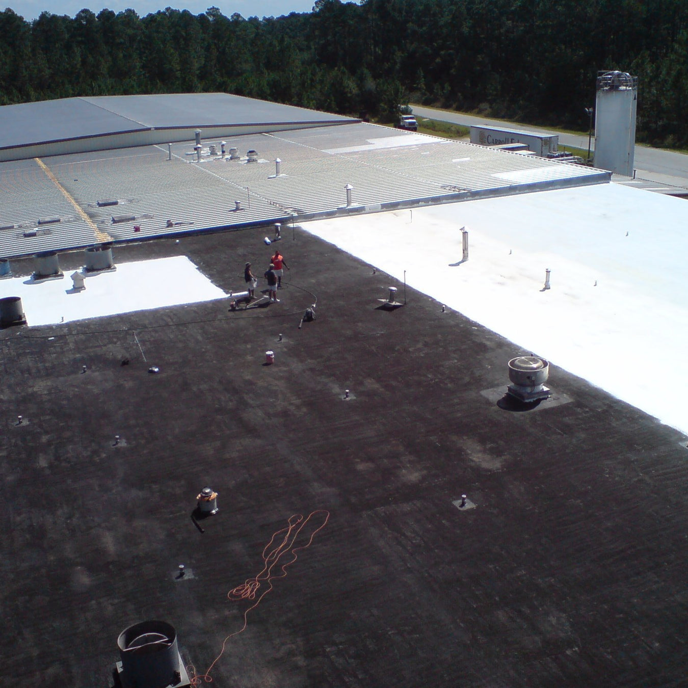 Reflective roof coatings reduce surface temperatures up to 100 degrees.